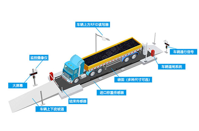 自動(dòng)過磅稱重系統(tǒng)地磅過磅流程為:車輛進(jìn)廠通過車牌識別系統(tǒng)自動(dòng)采集車輛信息,綠燈亮起,道閘桿打開,車輛過磅,LED屏顯示車輛相關(guān)信息。