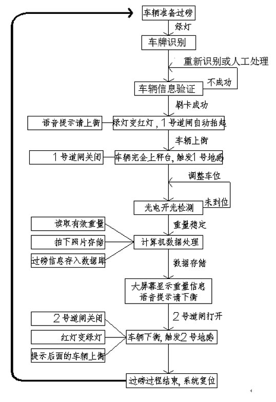 RFID卡自動稱重系統(tǒng)自動識別車輛車牌號碼,方便快捷。要求:場內(nèi)對車輛管理較嚴格,車牌的完整度和清潔度。過磅原理流程如下: