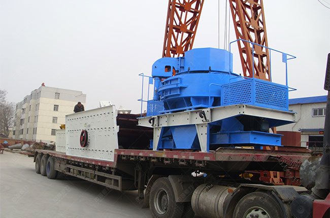 沖擊式破碎機(jī)通常用在物料的破碎,被普遍運(yùn)用于種類多巖石等堅(jiān)硬物料的破碎,物料由下料斗進(jìn)入沖擊式破碎機(jī),經(jīng)分料器將物料分成兩部分,有的由分料器中間進(jìn)入高速旋轉(zhuǎn)的葉輪中,在葉輪內(nèi)被以高的速度加速,其加速度可達(dá)數(shù)百倍重力加速度,然后以60-70米/秒的速度從葉輪三個(gè)均布的流道內(nèi)拋射出去,先同由分料器四周自收落下的有的物料沖擊式破碎機(jī)碎,然后一起沖擊到渦支腔內(nèi)物料襯層上,被物料襯層反彈,斜向上沖擊到渦動(dòng)腔的頂部,又變化其運(yùn)動(dòng)趨勢(shì),偏轉(zhuǎn)向下運(yùn)動(dòng),從葉輪流道發(fā)射出來(lái)的物料形成持續(xù)的物料幕,這樣一塊物料在渦動(dòng)粉碎腔內(nèi)塑造兩次以至無(wú)數(shù)次機(jī)率沖撞、磨擦和研磨破碎作用,被破碎的物料由底部排礦口排出