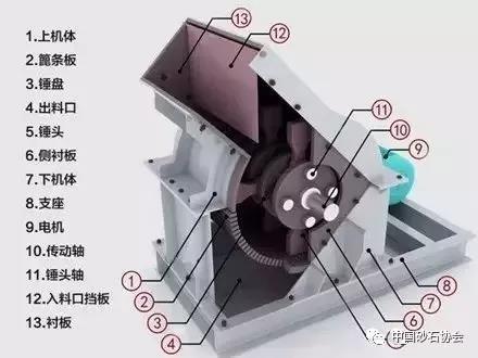 錘破由轉(zhuǎn)子、錘頭、錘架、銷軸、機架、破碎板、篩板、傳動部件等組成,錘頭鉸支在錘架上。