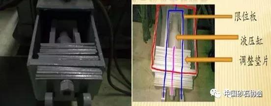 先松開調(diào)整墊片的固定螺釘,然后液壓缸動作,推動里面的彈簧,使反擊板與轉(zhuǎn)子的間距變小,將外面的墊片裝到里面,接著松開液壓缸,直至限位板卡著里面的墊片。