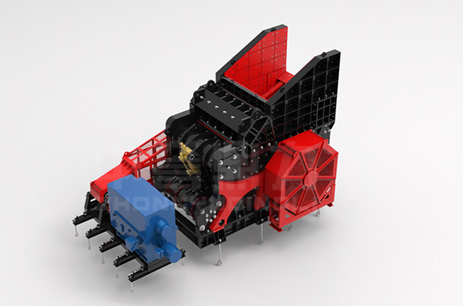 粗碎臥式旋回破進(jìn)料口尺寸2560×1400mm,可容納1200mm以下的物料進(jìn)入。