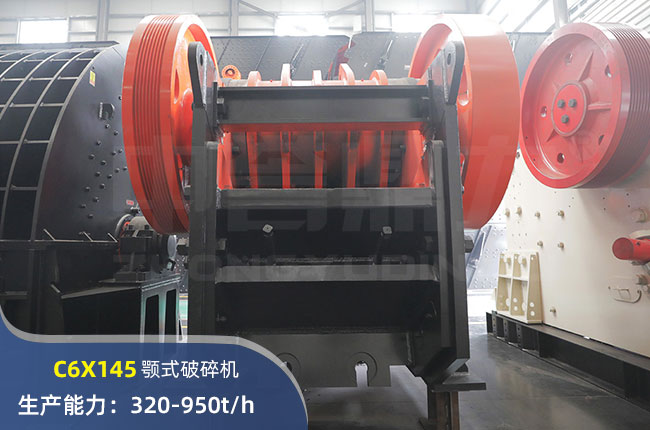 C6X145顎式破碎機(jī)進(jìn)料口尺寸1100×1450mm,進(jìn)料粒度≤1100mm,出料大小≤125mm,電機(jī)功率200kw,時(shí)產(chǎn)在320-950噸左右。