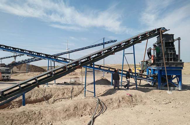 時(shí)產(chǎn)150噸石料廠設(shè)備安裝現(xiàn)場(chǎng)