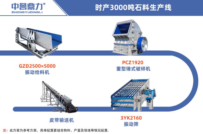 時產(chǎn)3000噸碎石生產(chǎn)線方案