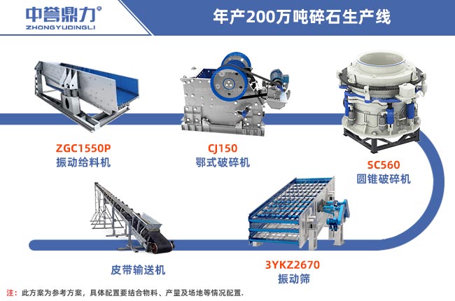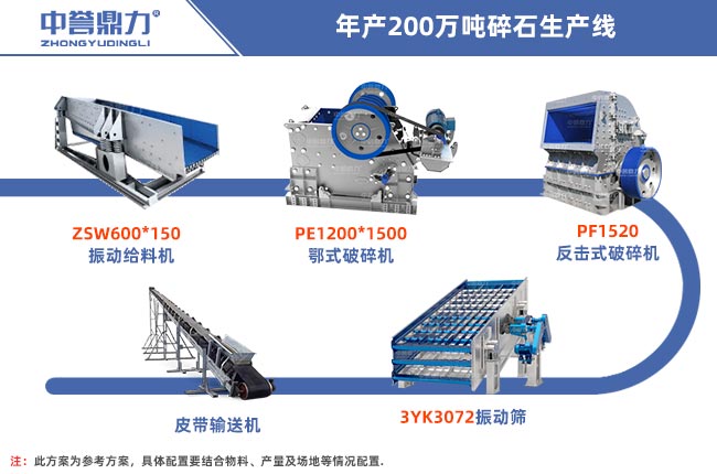 年產(chǎn)200萬噸碎石投資方案可以從物料硬度大小進行配置,比如硬度小的物料我們稱之為軟巖,如石灰石、青石這些都是軟巖,硬度大的物料我們稱之為硬巖,如花崗巖、鵝卵石等物料,在配置方案時要根據(jù)物料硬度進行設備的選擇,這兩條生產(chǎn)線的投資都在五六百萬左右,實際價格會有差異,下面給大家列舉兩條生產(chǎn)線搭配方案,僅供參考。
