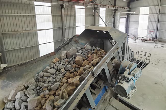 重錘破產量高,可以配置兩臺DLPCZ2125重錘破,組建2條生產線即可,投資成本要比鄂破小很多,也能減少1/2的占地,不過該方案適合石灰石等低硬度脆性物料。
