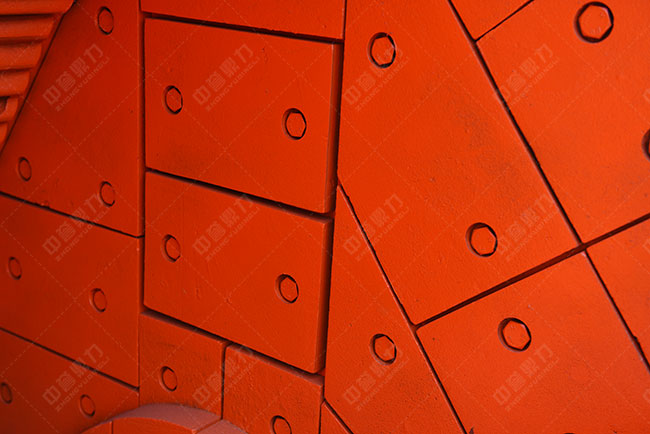 假如反擊襯板的內(nèi)表觀顆粒定做正確,物料的飛行趨勢將與反擊襯板表觀成近似垂直聯(lián)系,從而較大限度地利用物料動能,增強粉碎成效。