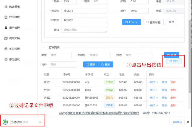 中譽(yù)鼎力電腦地磅秤軟件可設(shè)置用戶權(quán)限,根據(jù)權(quán)限設(shè)定可以調(diào)出或?qū)С鲞^磅記錄,導(dǎo)出文件為excel文件。