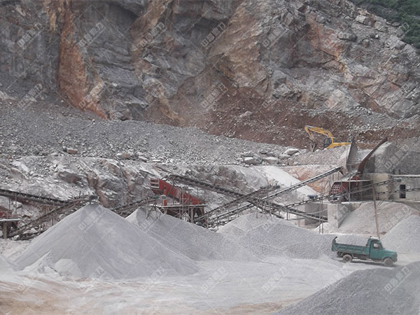 采石場(chǎng)在生產(chǎn)沙石的過(guò)程當(dāng)中先對(duì)巖石進(jìn)行一步的粗碎過(guò)程,然后緊接著將已經(jīng)生產(chǎn)出來(lái)的成品粗骨料進(jìn)行下一步的破碎過(guò)程,步破碎主要是在破碎機(jī)中達(dá)成的,通常情景下要靠皮帶運(yùn)輸機(jī)進(jìn)行輸送,然后通過(guò)礦山振動(dòng)篩 的影響將整型破碎過(guò)后的巖石進(jìn)行分離,分離的結(jié)果通?梢匀〉脙煞N巖石,一種是符合制沙機(jī)粒度要求的將直接進(jìn)入下一道流程,另一部分不符合生產(chǎn)需要的將被又一次通過(guò)返料的過(guò)程進(jìn)入細(xì)磨的過(guò)程,而初始進(jìn)入下一道流程的石子也分為兩種,一種是符合要求的只要又一次通過(guò)洗砂的過(guò)程就可以成為成品了,而其余的還要又一次進(jìn)行破碎,