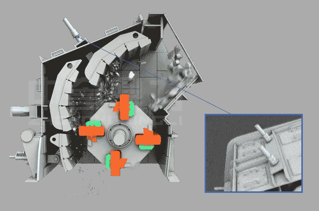 反擊破碎機(jī)出料大小在15~40mm以下,可通過調(diào)整反擊架和板錘間的距離,控制破碎粒度大小(即出料大。。反擊破碎機(jī)屬中細(xì)碎設(shè)備,多用于生產(chǎn)線二級(jí)破碎階段,常見搭配組合為“鄂破+反擊破”。