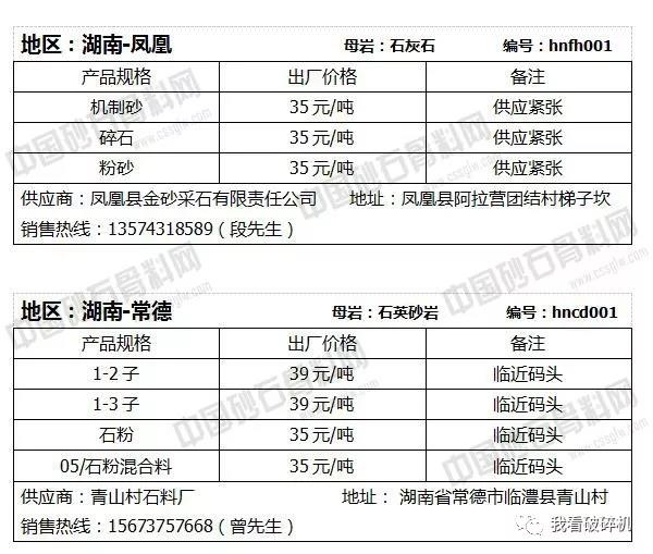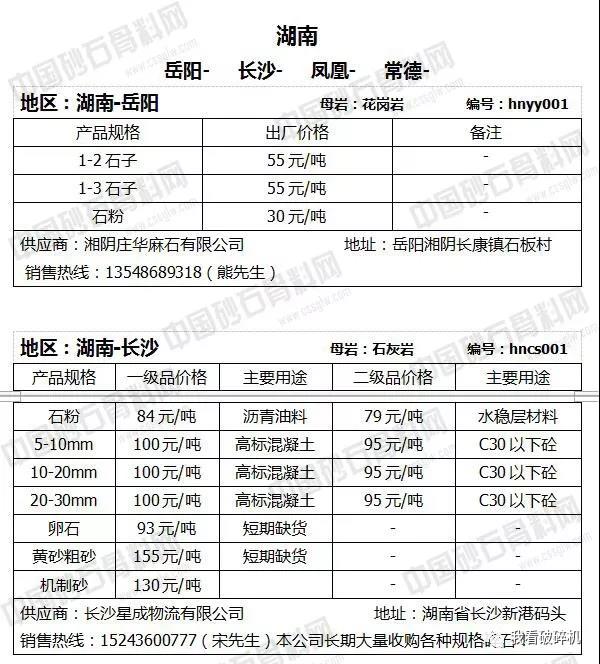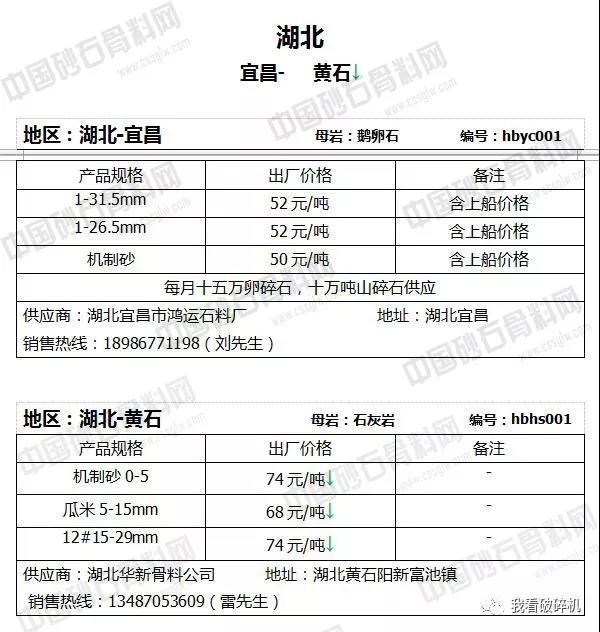 湖北地區(qū):黃石砂石價(jià)格下調(diào)2元/噸。
