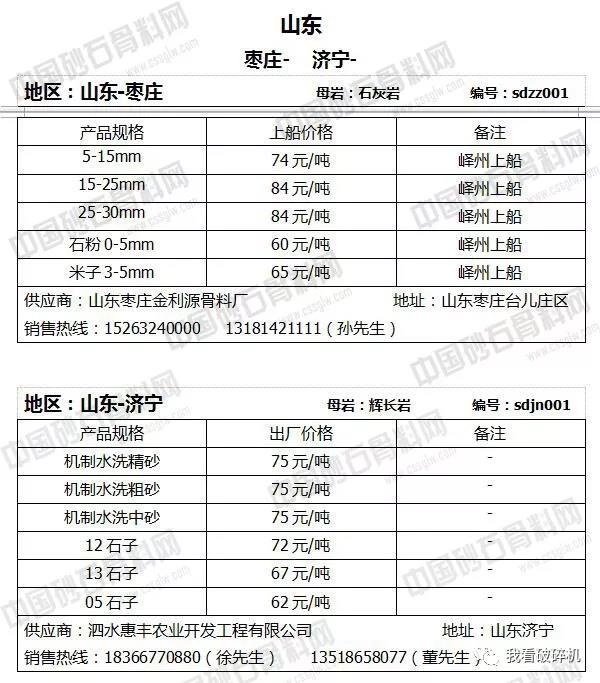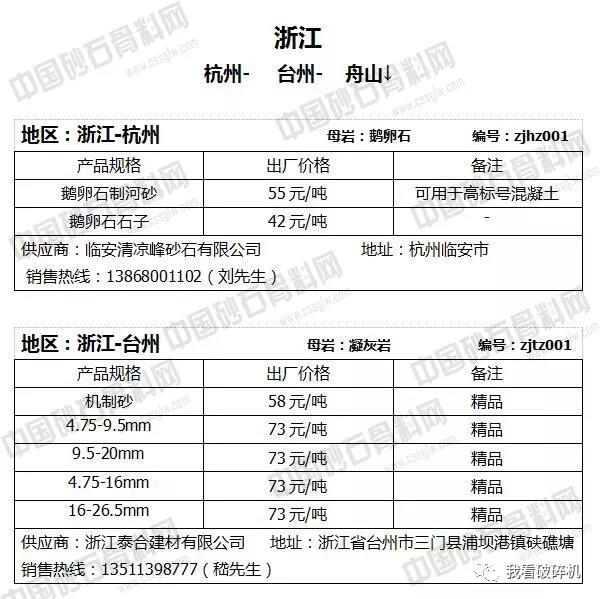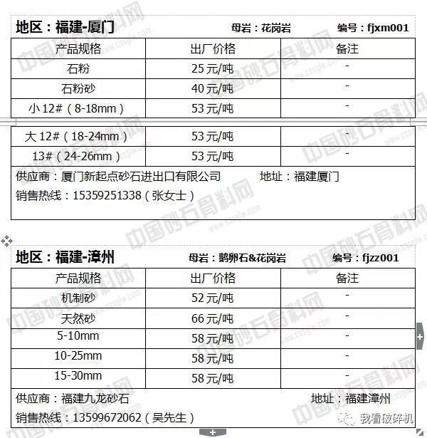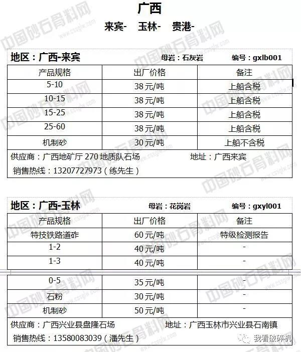 2018年7月下旬砂石骨料報(bào)價(jià)信息