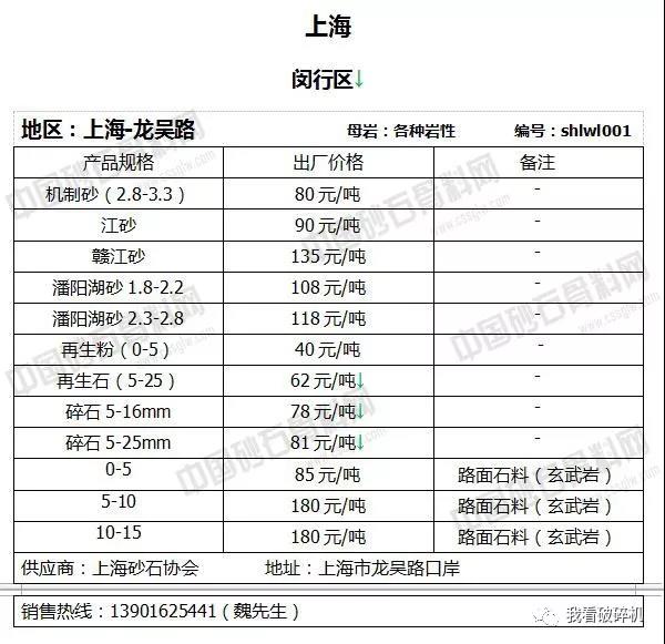 上海:部分規(guī)格的砂石價(jià)格下調(diào)。