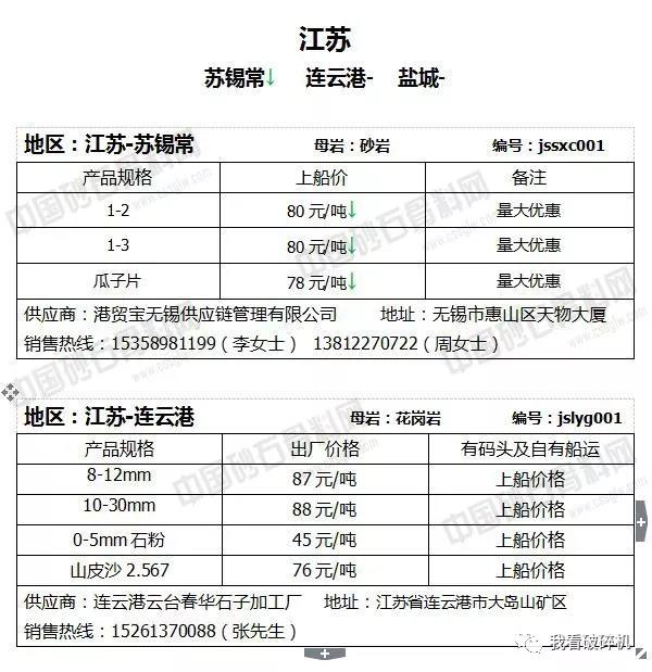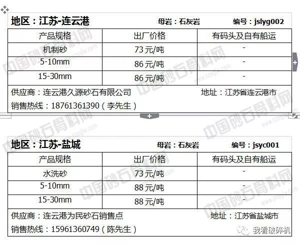 江蘇地區(qū):蘇錫常砂石價(jià)格普遍下調(diào)2元/噸,連云港砂石價(jià)格相對持平,可能會有1元/噸左右的波動(dòng)幅度。