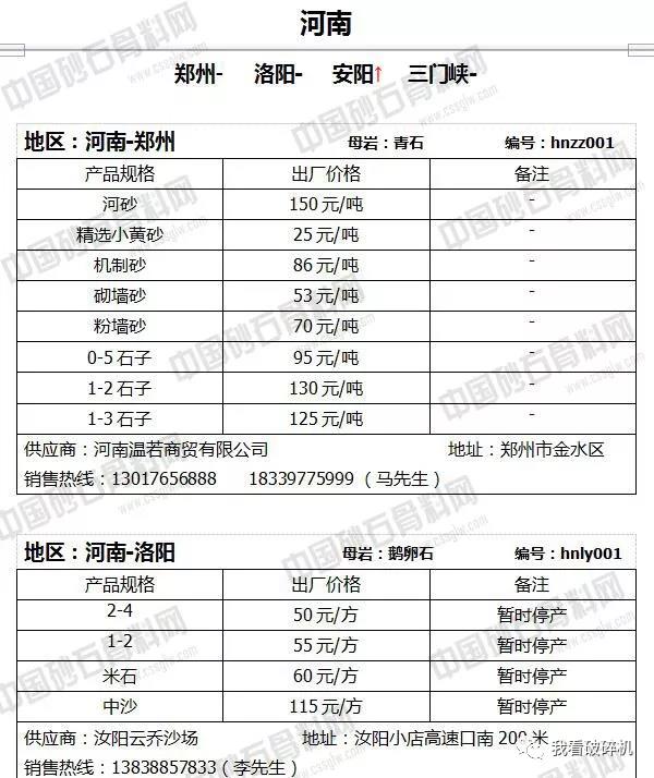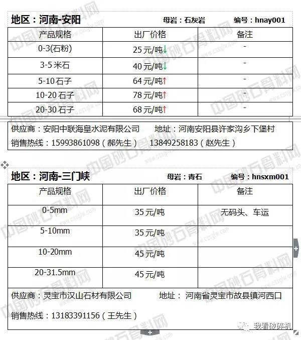河南地區(qū):安陽10-20石子價(jià)格上調(diào)19元/噸,10-20石子價(jià)格上調(diào)7元/噸,石粉和米石小幅下調(diào)1元/噸。