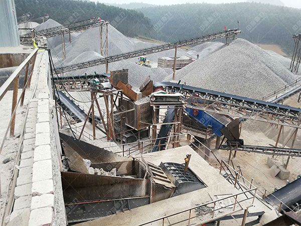 原料堆、ZSW380-95震動喂料機、PE600-900顎式破石機、PF1210反擊破、2YK1854震動篩、B800-18米傳送機、B800-22米傳送機、HX-09細碎機、B800-10米傳送機、B650-23米傳送機、B500-10米傳送機、XS2914洗沙機。