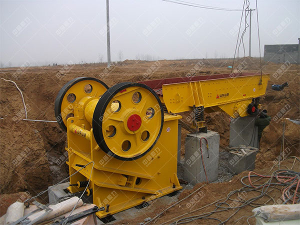 2、型號(hào)為PE-600×750的100t/h顎式碎石機(jī),它的預(yù)留送料口尺寸為600×750毫米,可許可給料粒度為500毫米,出料口調(diào)改范圍,即成品粒度為150-200毫米,偏心軸轉(zhuǎn)速為275r/min,理想產(chǎn)能盈利可達(dá)80-240噸/時(shí),與之配置的電機(jī)功率為6P 55kw,整機(jī)總性能可達(dá)15.8t。