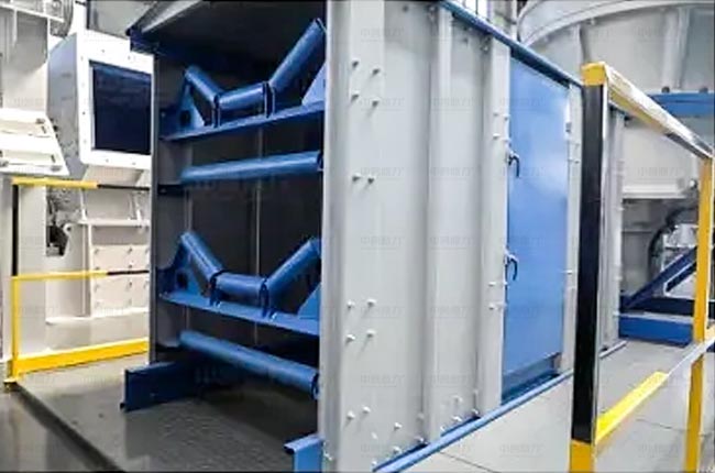 中譽鼎力自主研發(fā)的箱式皮帶輸送機,將皮帶輸送機和生產(chǎn)線設(shè)備部密封在一起,不僅有限避免揚塵外溢,還能減少除塵器使用數(shù)量,生產(chǎn)線設(shè)備投資、后期能耗以及維護成本。