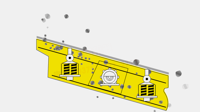 振動篩的運(yùn)動是由電動機(jī)通過三角帶驅(qū)動具有偏心質(zhì)量的激振器,從而使篩機(jī)做周期性的不對稱往復(fù)機(jī)械振動,使篩面上的物料層松散并離開篩面被拋起,使細(xì)級物料能透過料層下落,通過篩孔分離,并將卡在篩孔中的物料振出,細(xì)級物料向下部移動,通過篩網(wǎng)孔徑大小限制,實現(xiàn)篩選作業(yè)。