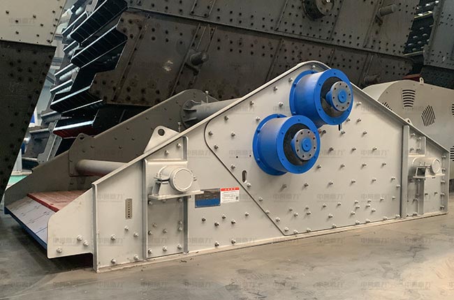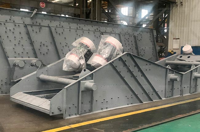 主要由篩箱、箱式激振器、支撐系統(tǒng)及電機(jī)組成,通過膠帶聯(lián)軸驅(qū)動(dòng)箱式激振器,箱式激振器內(nèi)部齒輪作同步反向運(yùn)轉(zhuǎn),兩組偏心質(zhì)量產(chǎn)生的離心力沿振動(dòng)方向的分力疊加,反向離心抵消,從而形成單一的沿振動(dòng)方向的激振動(dòng),使篩箱做往復(fù)直線運(yùn)動(dòng)。