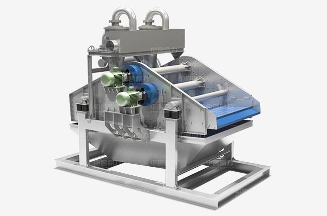細(xì)沙回收脫水一體機(jī)工作時(shí)渣漿泵將篩水混合物輸送至旋流器,離心分級(jí)濃縮的細(xì)沙經(jīng)沉沙嘴提供給脫水篩,脫水篩負(fù)責(zé)清洗、分級(jí)、脫水后,細(xì)沙、泥等經(jīng)溢流水箱流入污水處理系統(tǒng)。