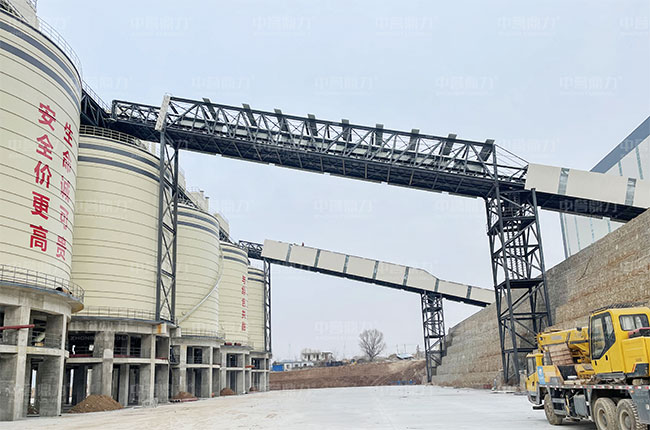 上面是項目正在施工中的實拍照片,可以看出生產線的大致進展情況,各個生產設備已經運送至施工現(xiàn)場,并且安裝固定到既定的位置,儲料倉的主體基本建設完成,皮帶輸送機的鋼支架也都搭建完成。
