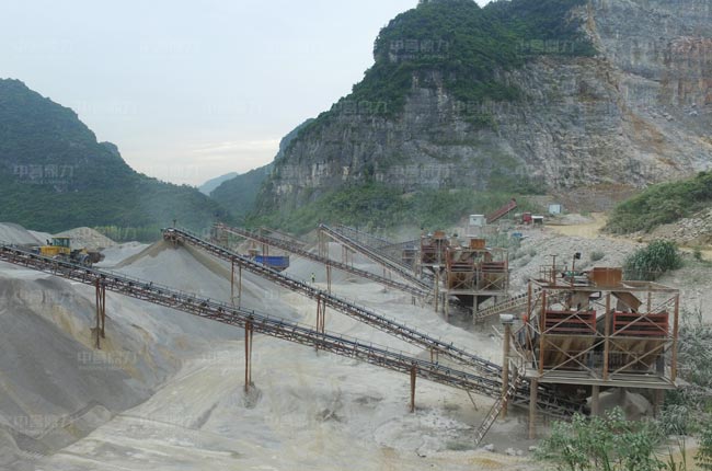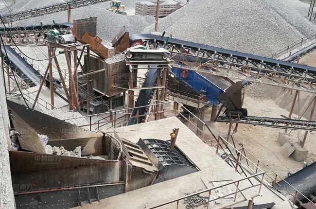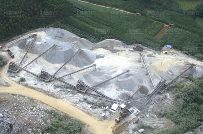 該套時產700-800噸的固定式砂石料生產線中的1615重錘式破碎機破碎比大,可一破成型,加上臨近設計整形破碎機,整個生產線流程設計合理,出料運輸通暢,操作運營方便,相比鄂破反擊破的配置,加工出的石料粒型好,成品質量高,石粉產出率低。