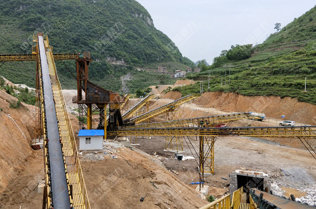 該條小型砂石料生產(chǎn)線的生產(chǎn)能力在200-250噸/時,是2018年3月開始承建,5月底建成投產(chǎn),為破碎+制砂型砂石生產(chǎn)線。