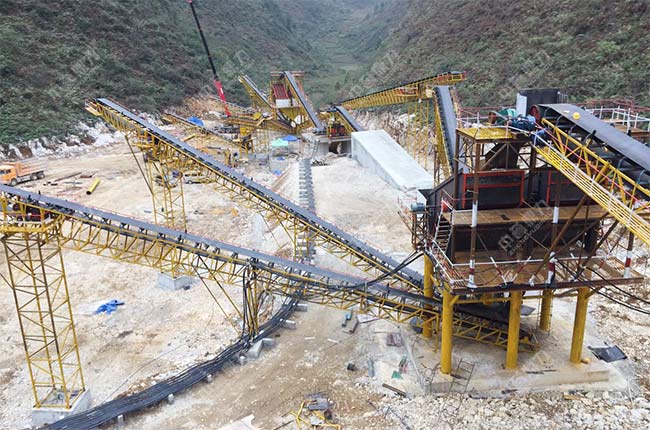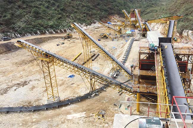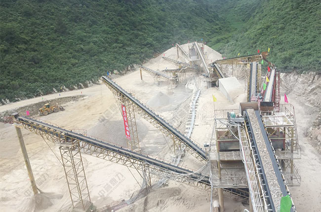 項(xiàng)目的主要特點(diǎn)是采用了一次破碎成型的生產(chǎn)工藝,原料進(jìn)入振動(dòng)給料機(jī)進(jìn)行除土并均勻地送到重錘破碎機(jī)進(jìn)行破碎,出來的石料經(jīng)過篩分后由皮帶機(jī)輸送至不同的成品料堆,生產(chǎn)流程簡(jiǎn)單,運(yùn)營(yíng)維護(hù)成本也比較低。