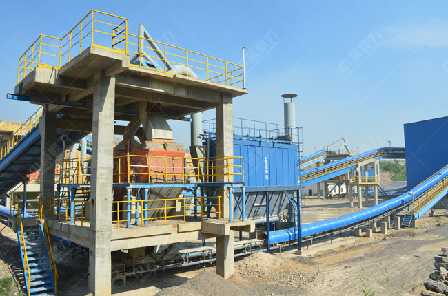 1615重錘式破碎機(jī)、1220整形破、3680振動篩、除塵器等