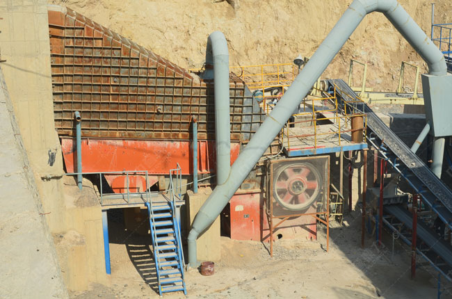ZG1238振動給料機(jī)、PCZ1512重型錘式破碎機(jī)、2YK2060振動篩*2、DMCA脈沖除塵器*5臺等。在這條石料生產(chǎn)線中,物料先經(jīng)由重型錘式破碎機(jī)進(jìn)行破碎,被破碎后的物料經(jīng)振動篩篩分分級,符合客戶粒度需求的成品物料被傳送至成品料堆,不符合的物料被重新送至破碎機(jī)機(jī)腔內(nèi)進(jìn)行再次破碎。在每一個環(huán)節(jié)都配置有相應(yīng)的除塵設(shè)備。這是一條封閉型的環(huán)保石料生產(chǎn)線。也是我們家砂石生產(chǎn)行業(yè)要發(fā)展的方向。