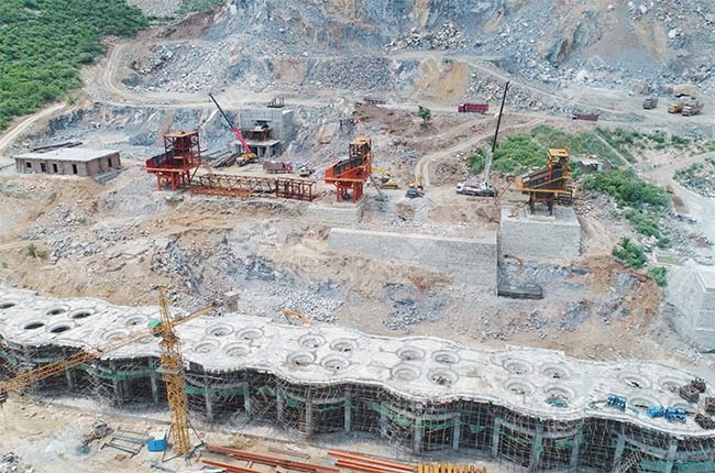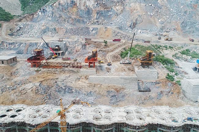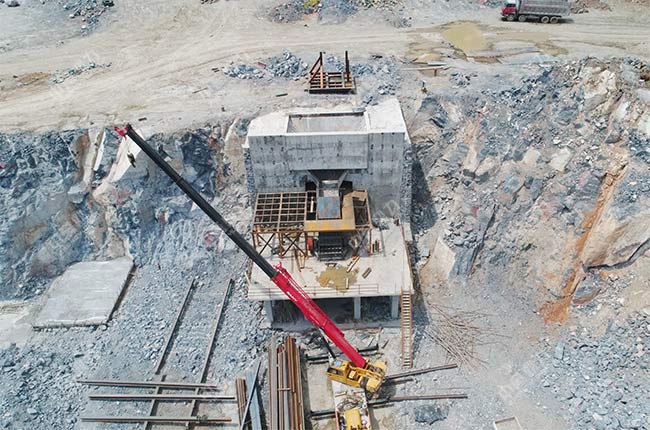 上面是項(xiàng)目在建設(shè)過程中的實(shí)拍圖片,破碎機(jī)、給料機(jī)、振動(dòng)篩等主要設(shè)備都已經(jīng)安裝完成,料倉(cāng)的基礎(chǔ)也已經(jīng)建好。