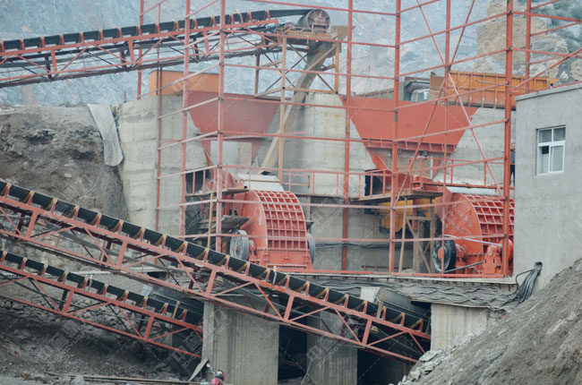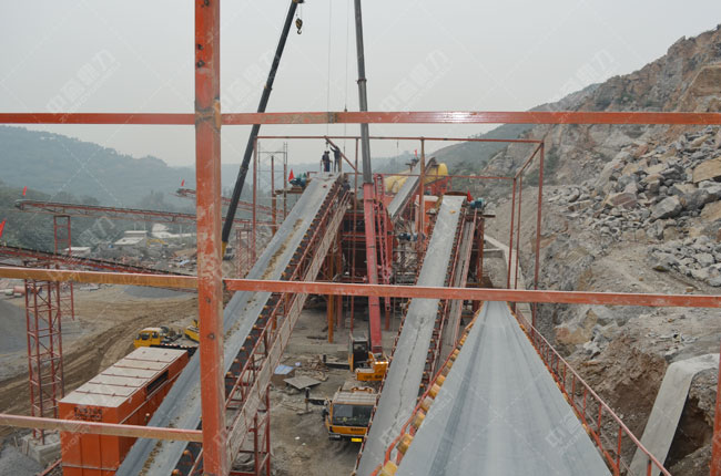 中譽重型錘式破碎機PCZ1615+PC1213+中譽振動給料機ZG1538*1臺+中譽圓振動篩3YK1460*2臺、2YK1460*2臺。
