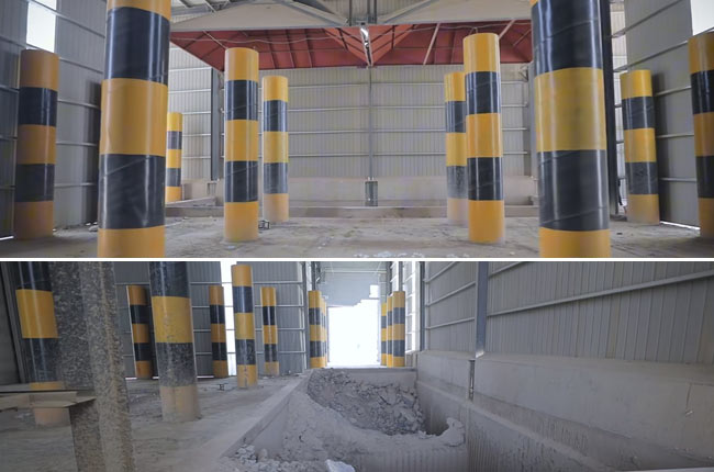 1、破碎原料倉寬6.5米,長(zhǎng)17米,保障同時(shí)5臺(tái)車卸料;