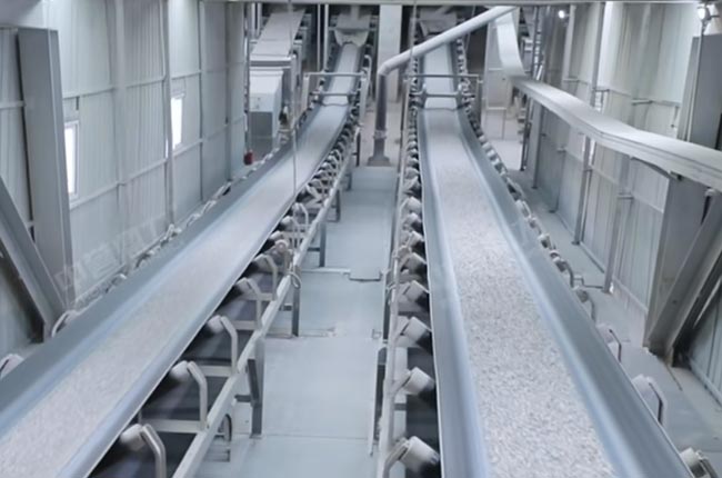 皮帶機進入罐倉(5000噸/個),某種成品料滯銷時,通過庫下皮帶機,轉(zhuǎn)存到成品緩沖倉,成品緩沖倉下面有一個通廊,也可以已實現(xiàn)自動裝車。