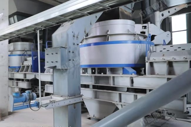 生產(chǎn)建筑骨料,兩臺歐版鄂破破碎后進入中轉(zhuǎn)倉,需要關(guān)閉齒輥破和預(yù)篩分棒條篩,篩分,31.5以上的進入閉路循環(huán)繼續(xù)破碎,31.5以下需要整形進入立軸沖擊破,不需要整形通過二級篩分篩出4種成品料;