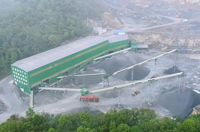 該項目位于湖北宜昌,在2021年開工建設(shè),總占地面積達200余畝,是一條時產(chǎn)1200噸的高標砂石骨料生產(chǎn)線(成品用于高鐵、橋梁、城市工程等工程建設(shè)),生產(chǎn)線采用的兩段式破碎、兩段式篩分工藝。主要設(shè)備包括DLZGC振動給料機、DLPCZ1820重型錘式反擊破、DLPC1622整形破、DLYKZ3680振動篩4臺以及其它配套設(shè)備,生產(chǎn)的砂石骨料種類豐富,包括0-4mm機制砂、5-10mm、10-15mm、10-20mm、15-20mm、20-28mm骨料等多種規(guī)格,能夠適應不同工程部位和施工要求。