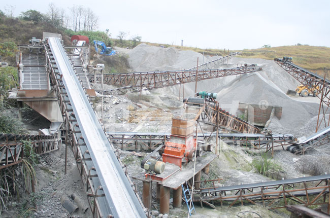 項(xiàng)目是處理石灰石料,要進(jìn)行破碎生產(chǎn)不同規(guī)格的石子,同時(shí)還要生產(chǎn)部分沙。中譽(yù)鼎力為其配置的是“錘式破碎機(jī)+雙轉(zhuǎn)子制砂機(jī)”。