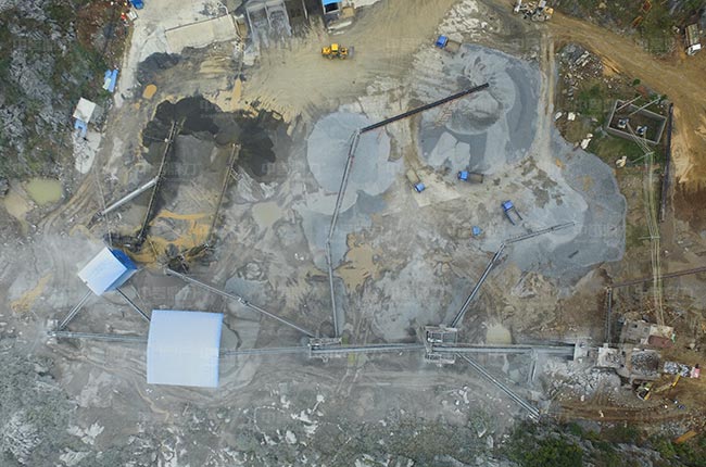 兩道篩分:PCZ重錘反擊式破碎機(jī)破碎后的石料,通過皮帶機(jī)送進(jìn)頭道曬分機(jī)組進(jìn)行篩分,會篩分出混合料,成品骨料及需要返回破碎機(jī)的石料;混合石料篩選通過二道篩機(jī)篩分,符合要求的通過成品皮帶機(jī)送至成品料堆;