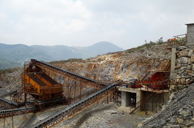 這條時產(chǎn)1200噸的碎石生產(chǎn)線,加工工藝較為簡單,主要采用錘式破碎機(jī)為主要碎石設(shè)備,生產(chǎn)0-5,5-10,10-20,20-30等多種不同規(guī)格的石料。