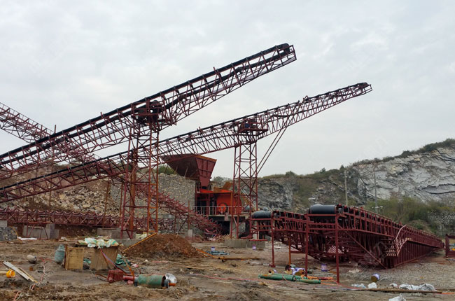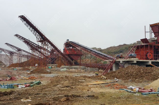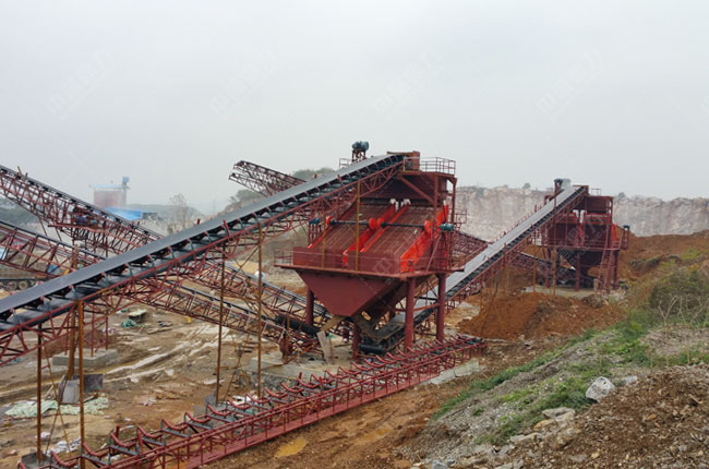 該項(xiàng)目16年9月投產(chǎn),是一條主要加工石灰石的石料生產(chǎn)線,因其要求時(shí)產(chǎn)500噸,產(chǎn)能較小,中譽(yù)鼎力為其配置了“1538給料機(jī)+1615重錘破+2470振動(dòng)篩”。