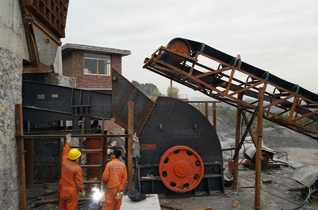 江西新余某石料廠建設(shè)的碎石生產(chǎn)線屬于300噸小型生產(chǎn)線,采用一臺一次成型的PCZ重型錘式破碎機,設(shè)計有3臺振動篩,分三道篩分工藝,成品骨料規(guī)格多。