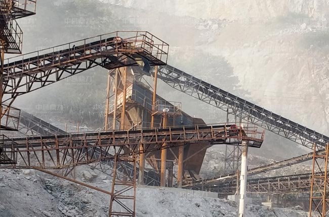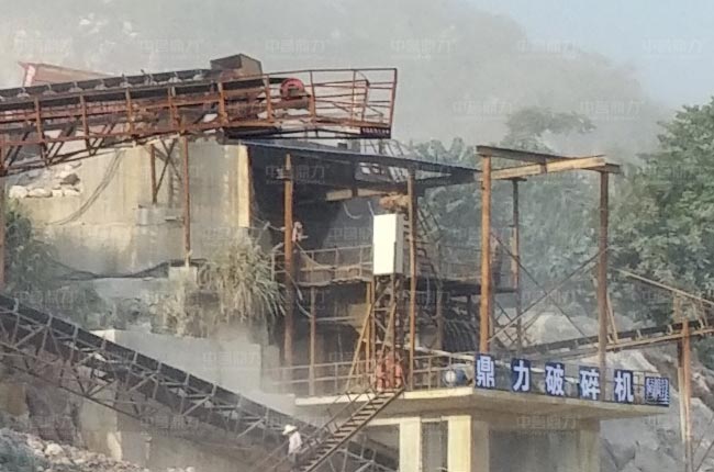 這個(gè)日產(chǎn)五千噸噸石料生產(chǎn)線2017年8月投產(chǎn),破碎石灰?guī)r物料,生產(chǎn)0-5、1-2、1-3等多種規(guī)格的碎石骨料,采用一次成型的PCZ1815重錘式破碎機(jī)配置方案。
