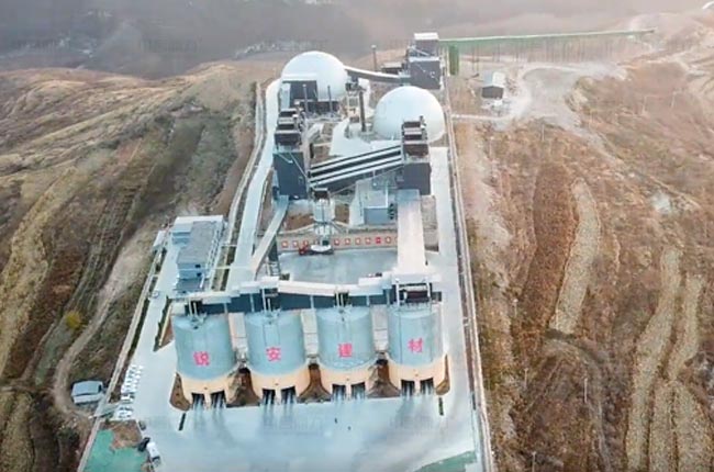 銳安建材秉承綠色發(fā)展理念,生產(chǎn)線整體采用封閉設(shè)計(jì),26臺(tái)脈沖袋式除塵器、6臺(tái)風(fēng)力輸送設(shè)備、1.2公里的皮帶封閉長(zhǎng)廊、灑水車、霧炮機(jī)等除塵措施,成品料儲(chǔ)存于4個(gè)大型筒倉,筒倉下智能放料裝車,從生產(chǎn)到銷售防塵多措并舉,實(shí)現(xiàn)“采石不見石、產(chǎn)塵不見塵”,項(xiàng)目不論從環(huán)保、自動(dòng)化程度、產(chǎn)能等在當(dāng)?shù)囟际乔缚蓴?shù)的。