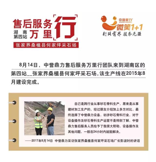 中譽(yù)鼎力湖南服務(wù)工程師郭學(xué)志說(shuō),對(duì)于初涉砂石骨料行業(yè)的用戶,中譽(yù)鼎力除了提供售后支持外,也會(huì)提供相應(yīng)服務(wù),比如行業(yè)情況講解,石料分析,生產(chǎn)線運(yùn)行管理,設(shè)備操作培訓(xùn)、保養(yǎng)培訓(xùn),不同自然天氣應(yīng)對(duì)等,生產(chǎn)線運(yùn)行正常,使用戶得到較高的率。