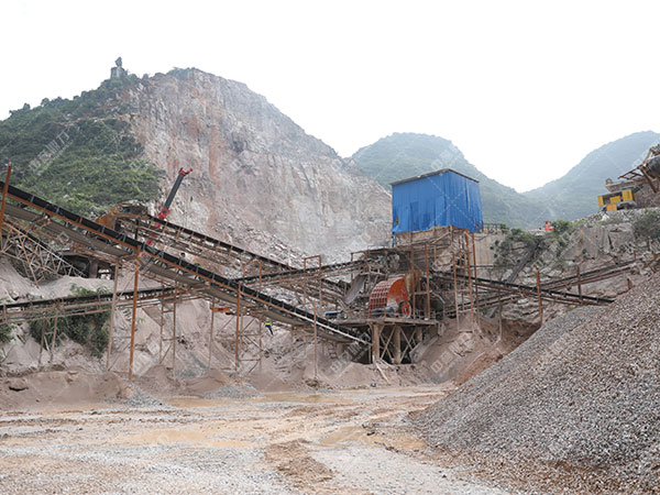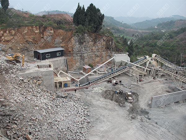 破碎生產(chǎn)線中大塊巖石經(jīng)料堆由振動送料機(jī)均勻地送進(jìn)鄂式碎石機(jī)進(jìn)行粗碎,粗碎后的巖石由皮帶運(yùn)輸機(jī)送入反擊礦山碎石機(jī)進(jìn)行深度破碎;整型破碎后的巖石由皮帶運(yùn)輸機(jī)送進(jìn)振動篩進(jìn)行篩選分級,篩選分級出多種不同性能的石子,粒度合格的石子由成品皮帶運(yùn)輸機(jī)送往砂石堆;不粒度合格的石子由皮帶運(yùn)輸機(jī)返料送入反擊礦山碎石機(jī)進(jìn)行又一次破碎,形成閉路多次循環(huán),成品粒度可根據(jù)用戶的需要進(jìn)行組合和分級,為保護(hù)環(huán)境,可搭配輔助的除塵機(jī)械。