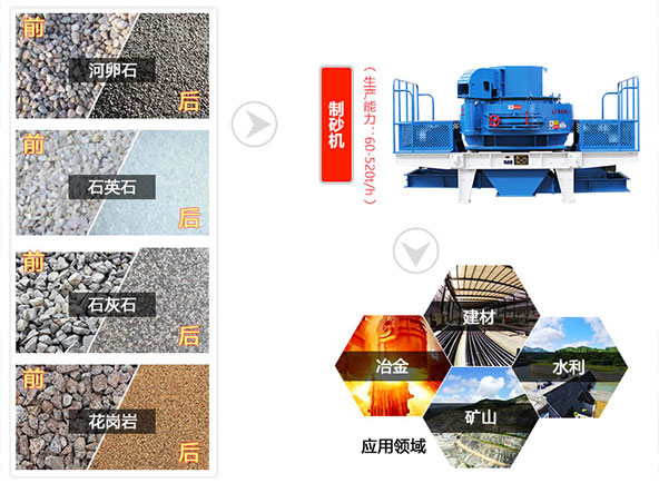 3、VSI立軸細碎機設備:經(jīng)過處理能力大,價格適中,產(chǎn)能:60-520噸/時。