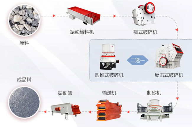 日產(chǎn)量3000噸左右的整套碎石設(shè)備有著好幾種搭配方案,以上好幾種型號的粉碎機械做出組成,就能不影響生產(chǎn)需求,以下講解兩個經(jīng)常使用的制作流程。