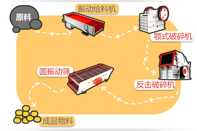配置機械:重反擊錘式破碎機+震動喂料機+振動篩分設(shè)備+傳送機